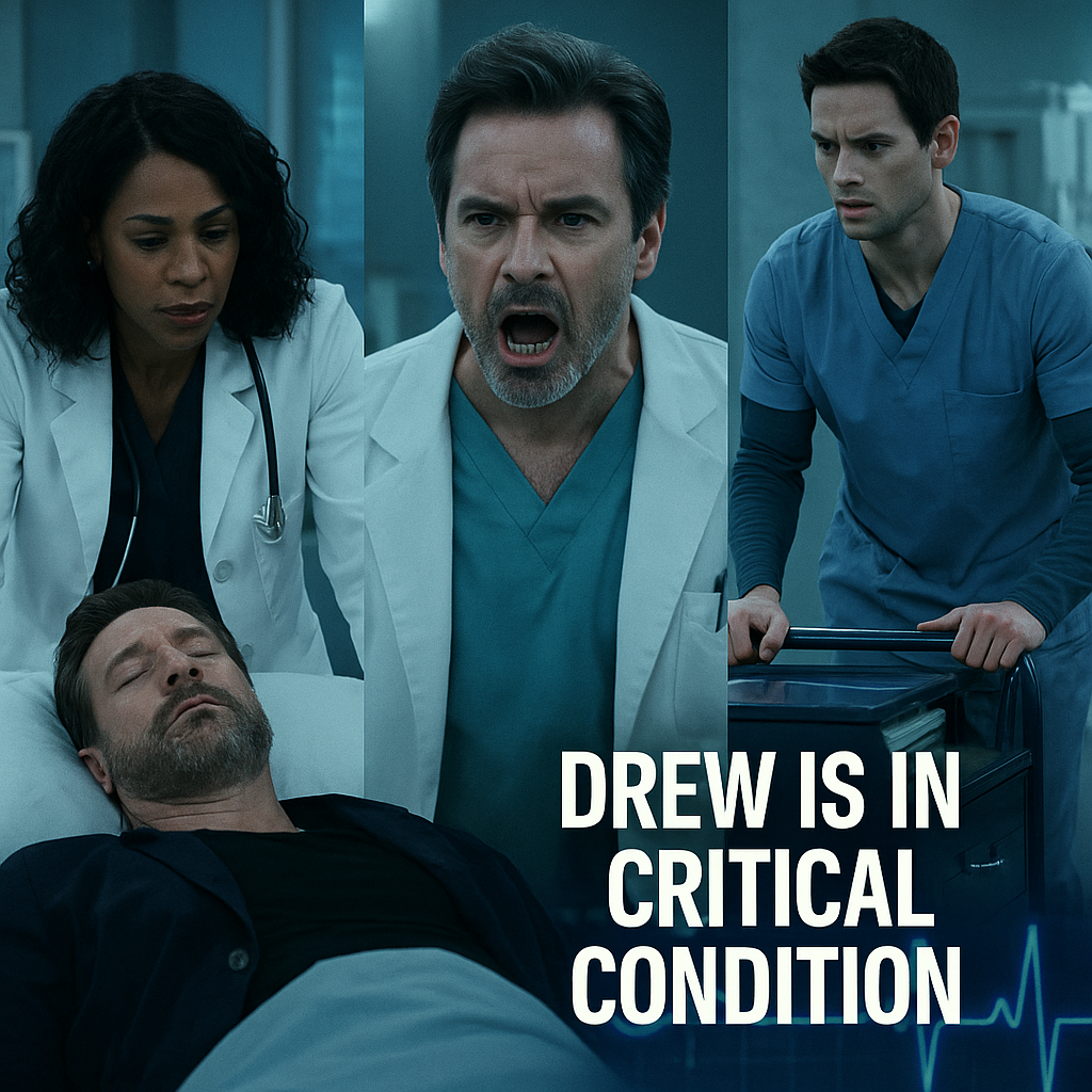 Drew is in critical condition, and the entire hospital is in chaos. After collapsing and coding on the table, the medical team pulled him back with seconds to spare. Surgery saves Drew—for now, but Port Charles is rattled to the core.
