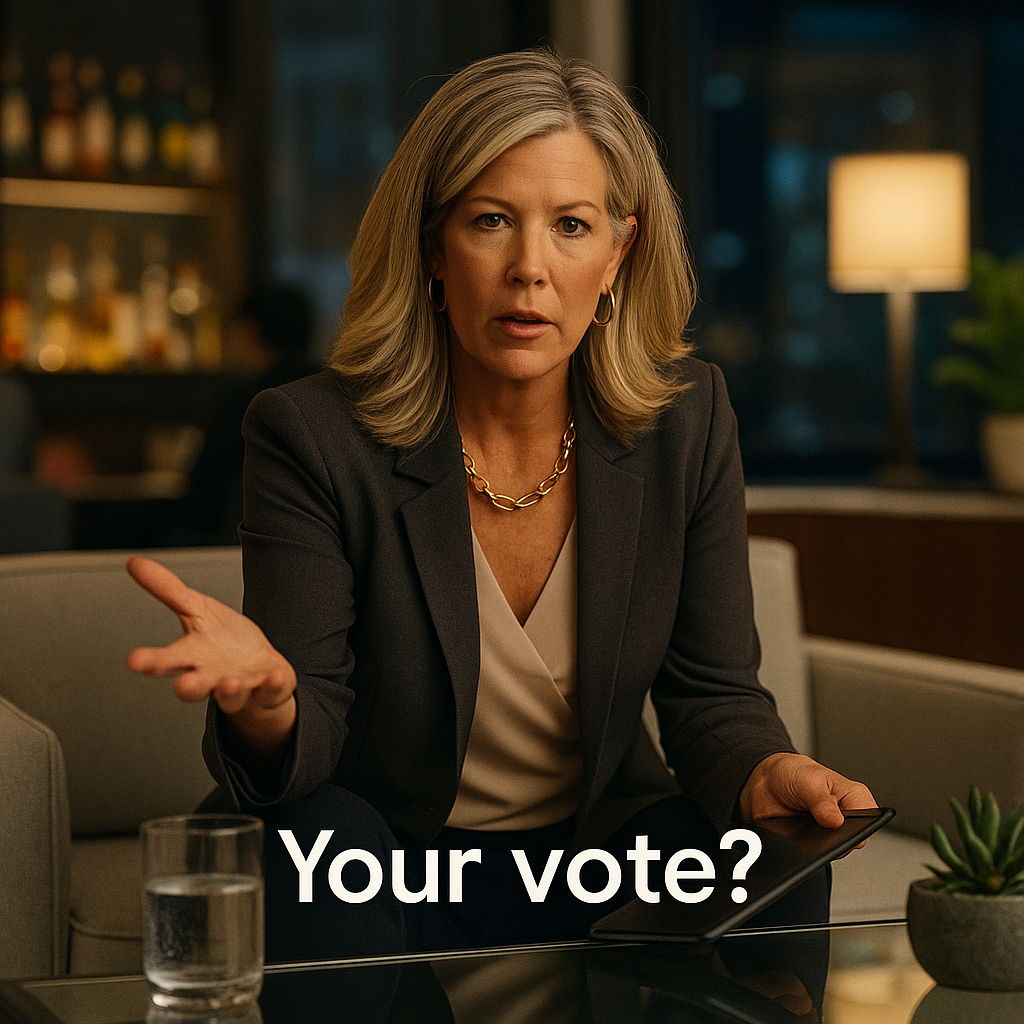 Everyone looked at Monica’s likeness. Tracy looked just underneath, where the wall meets the nail. Foundation check. Tracy reads the house like a spreadsheet. That glance said: “Can this place hold us without her?” The answer wasn’t immediate, but the glance counted as the first repair.