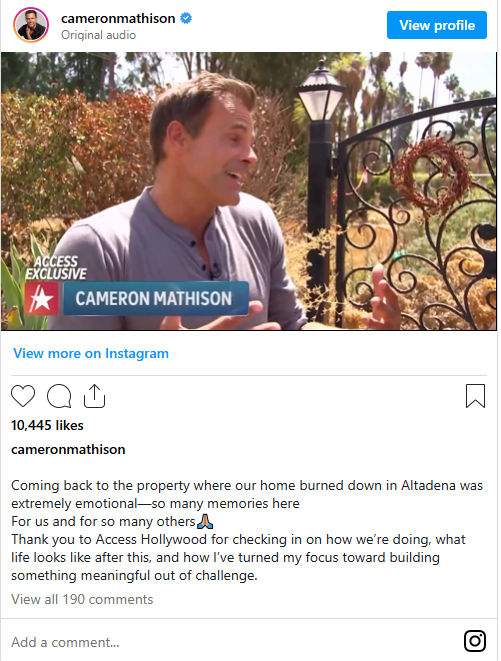 While sharing the clip from his walkthrough, Mathison wrote, “Coming back to the property where our home burned down in Altadena was extremely emotional—so many memories here.” He also revealed he’s turned his focus to having something meaningful come out of the challenge.